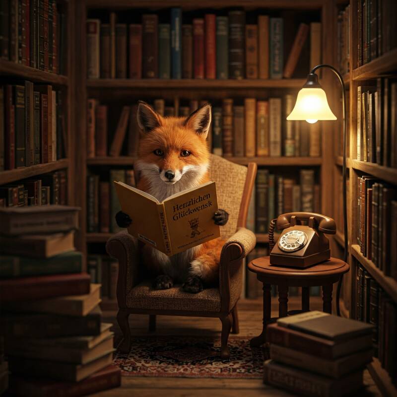 hat sich der schlaue Fuchs aus Rabensburg in das Werk "Herzlichen Glückwunsch" vertieft.